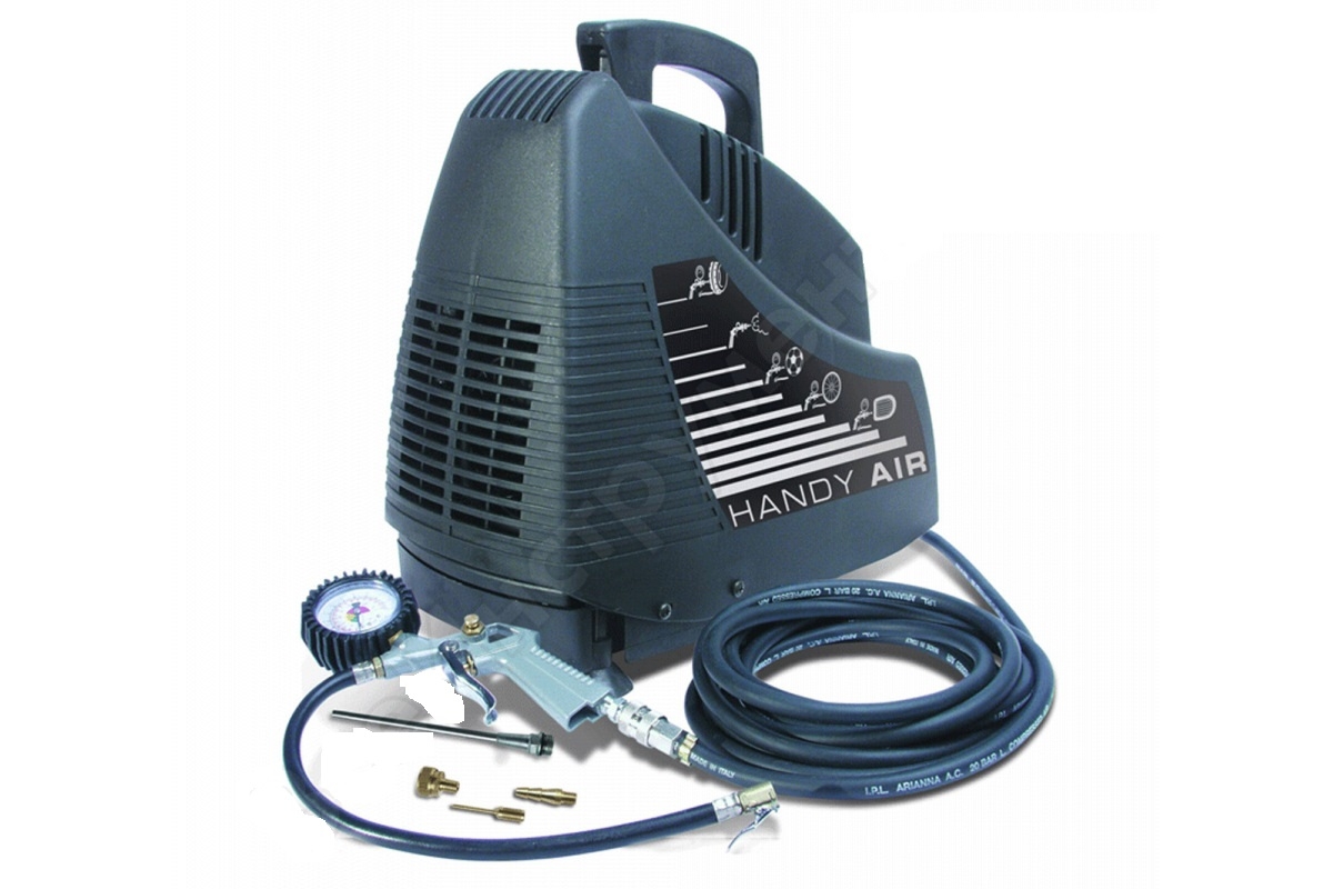 Компрессор ABAC HANDY AIR OL 195 служит для сжатия и подачи воздуха под давлением. Данная модель широко применяется в частном пользовании, используется для подкачки колес автомобиля, для этого в комплекте имеется пистолет с манометром. С помощью манометра оператор с точностью и без ошибок определит давление в шинах. Компрессор является безмасляным, что сводит его техническое обслуживание к минимуму. Его транспортировка тоже не составит труда, так как вес составляет всего 5 кг.